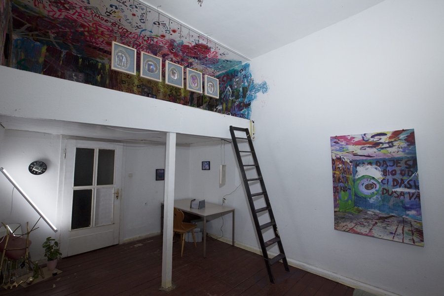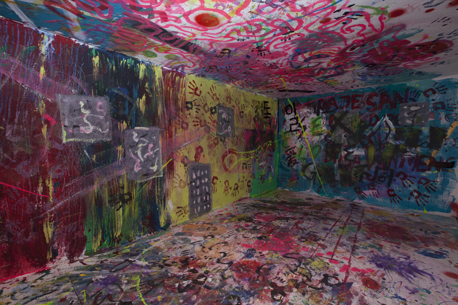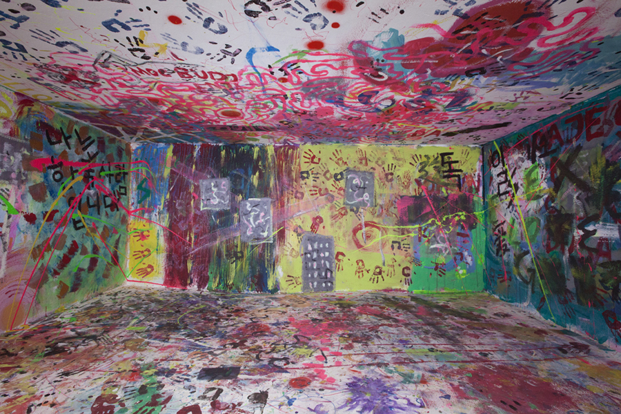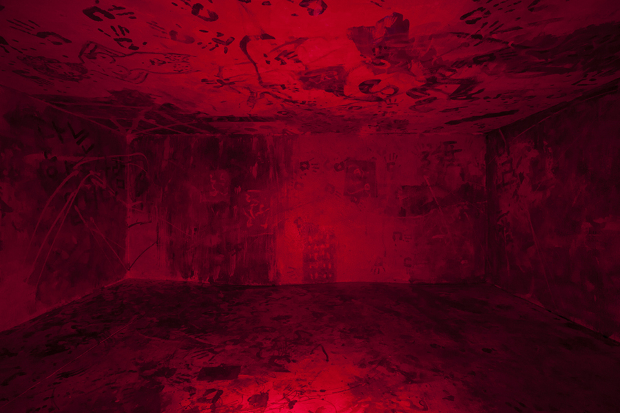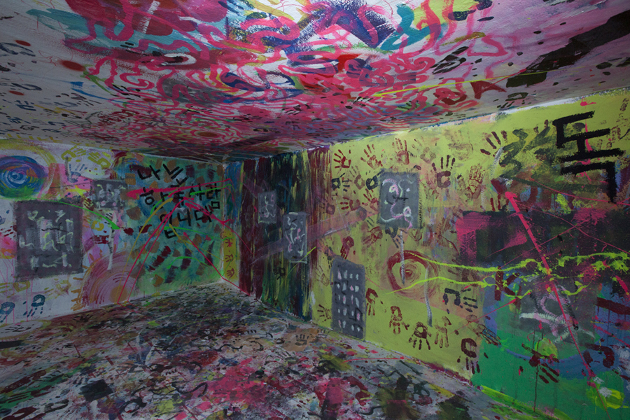 For three years from 2015 Sakurai used the loft space of his house in Dusseldorf as a photographic studio for his work. A total of 34 models painted their principles on the walls, and their identities were painted over and extended, forming a space that changed its appearance each time. The models returned to their primal state, undressed and naked, to be photographed by Ryuta Sakurai. This is a sequel to the "Human Trip 2014 - 2015", a project inspired by cave paintings and going back in the history of western art.